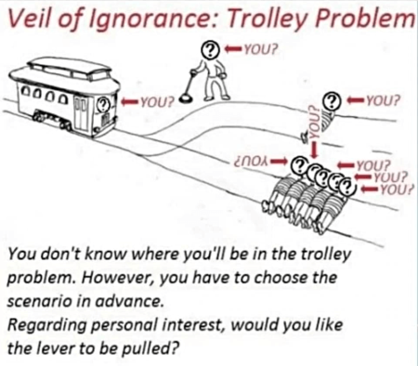 Scenario: In this scenario, you don’t know where you’ll be in the trolley problem. However, you have to choose the scenario in advance. Would it be in your personal interest for the lever to be pulled?